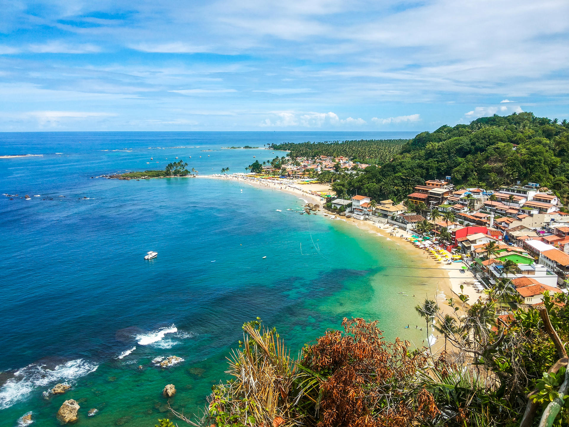 Em hora a combinar localmente, prosseguimos a pé até ao cais do Morro. Embarque em catamarã com destino a Salvador e transporte ao aeroporto. Formalidades de embarque e partida em voo regular com destino a Lisboa ou Porto. Noite a bordo.